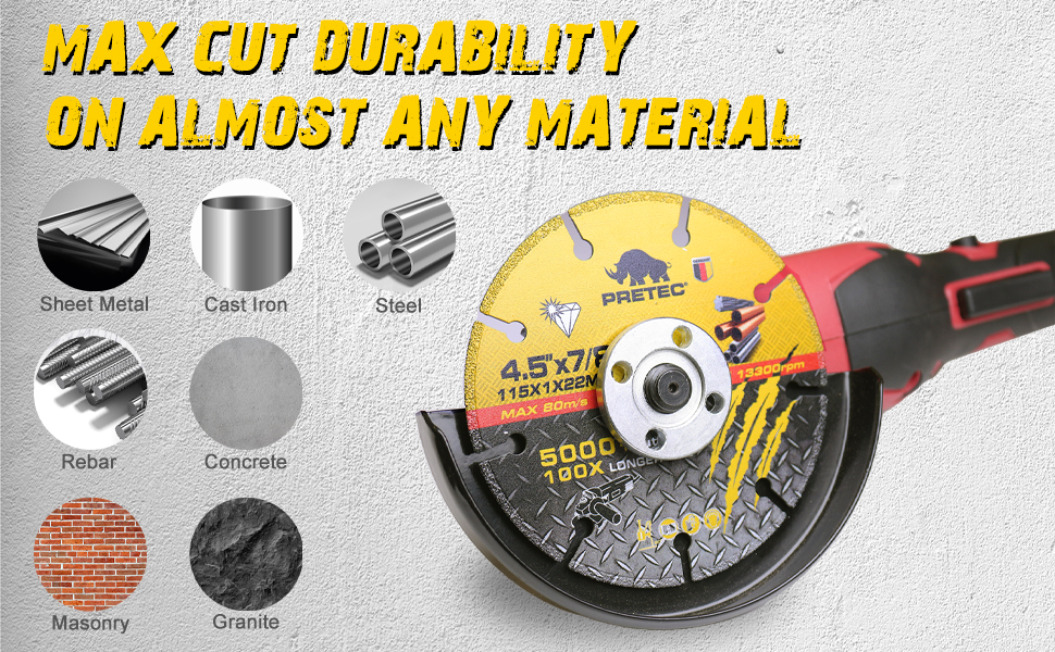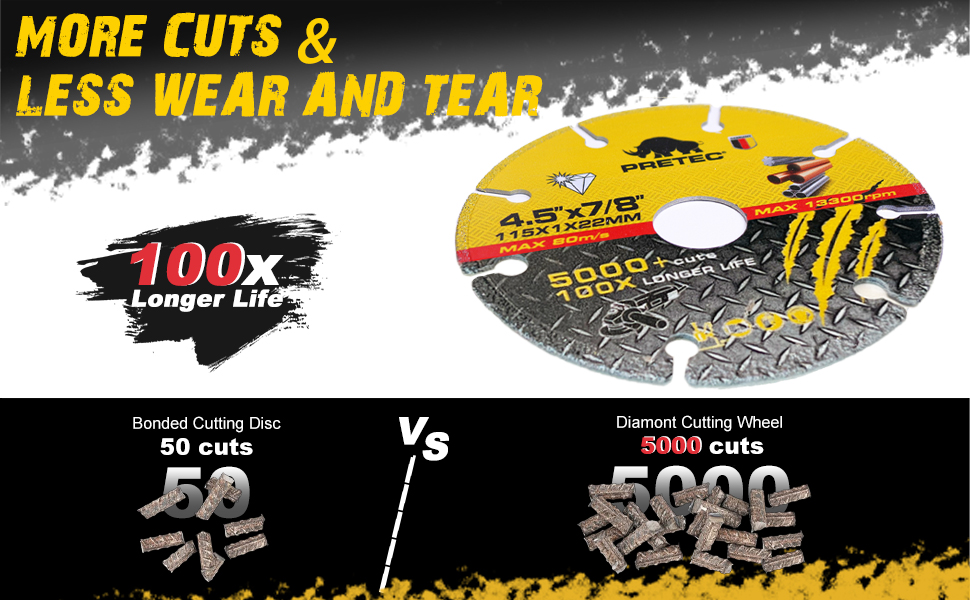 • Long-Lasting Blade Life – Each wheel delivers 5,000+ cuts, lasting up to 100x longer than standard thin cut-off wheels.