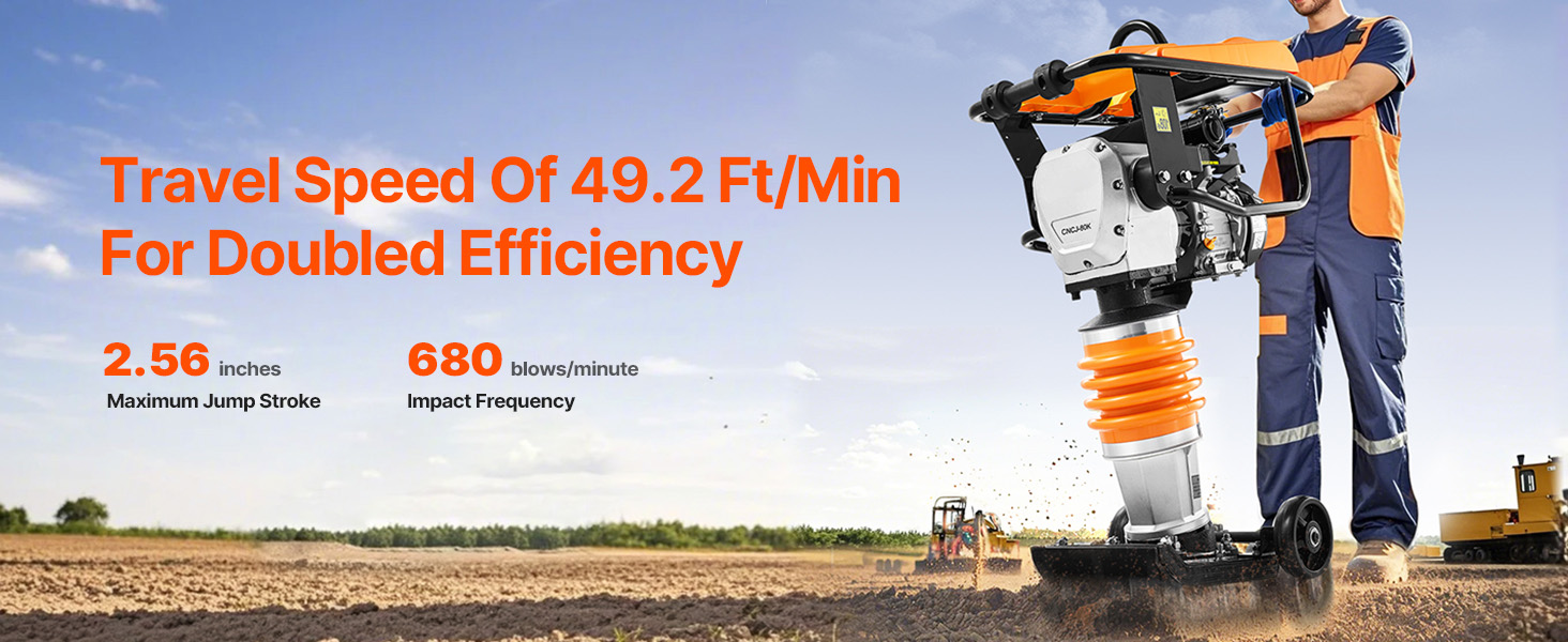 With a travel speed of 49.2 ft/min, the tamping rammer boosts work efficiency and saves time and labor costs.