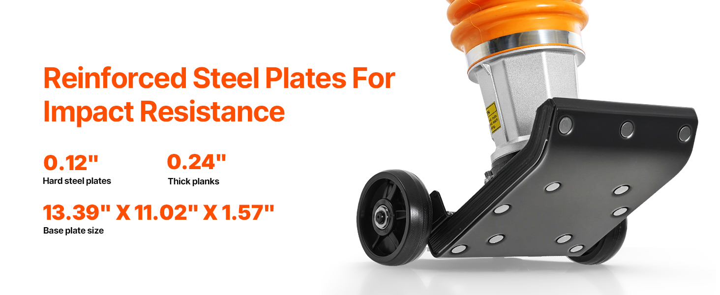 • Easy Mobility: Designed with two 5.4-inch transport wheels at the base and a top handle, this heavy-duty compactor can be easily moved to different job sites, enhancing convenience and work efficiency.