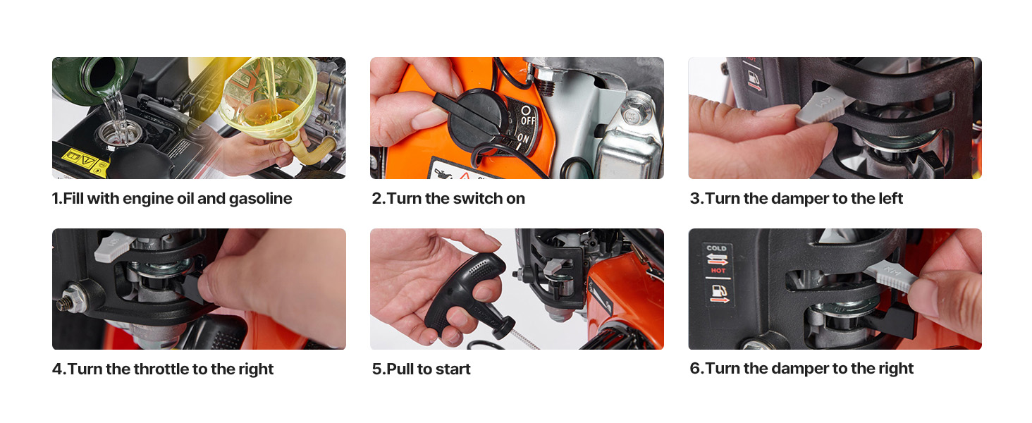 • Clear Oil Levels: The oil and fuel capacities are visible, making the compactor easy to monitor and refill as needed. This helps prevent damage or efficiency loss due to low oil levels. With an oil capacity of 0.4L - 0.6L and a fuel capacity of 2.8L, it meets the demands of prolonged, high-intensity operations.