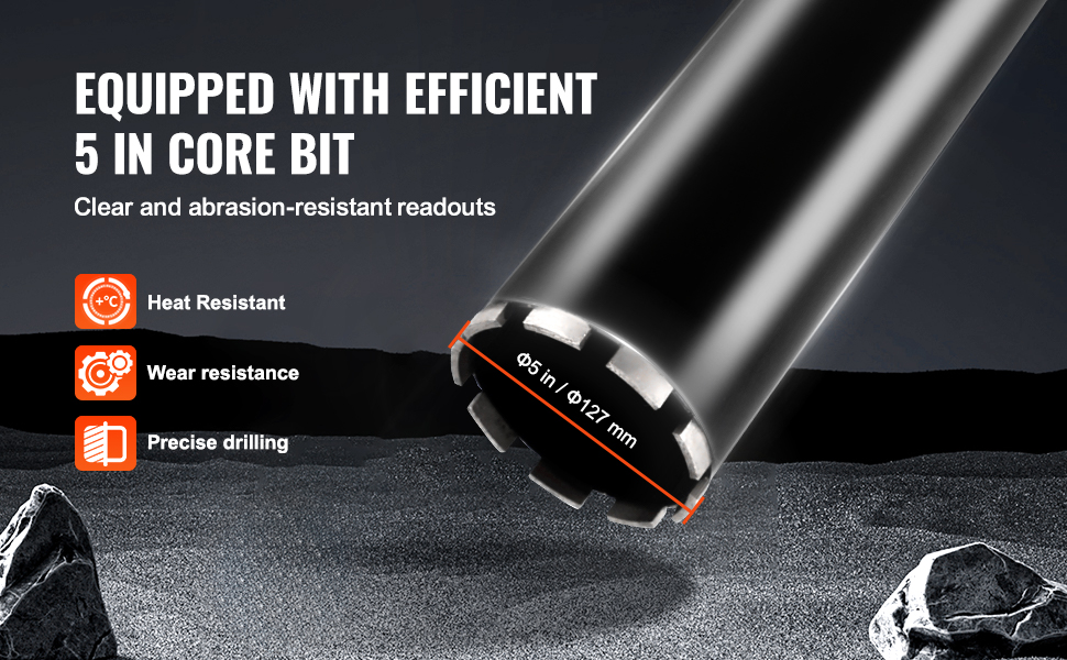 Equipped with a Φ5in/Φ127mm large-diameter drill bit, this concrete core drill excels in large-scale projects or specialized applications. Whether it's construction, renovation, or DIY tasks, this drill ensures every hole is precise and accurate.