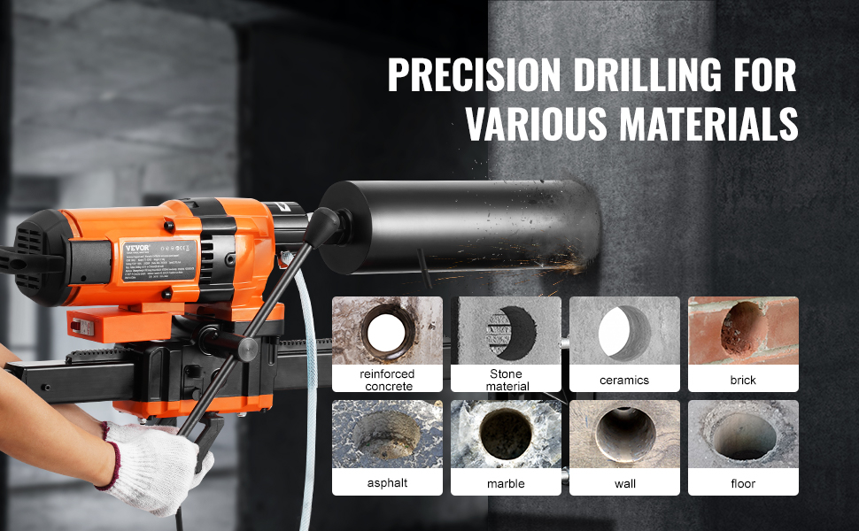 • Engineered for Precision Drilling: The diamond concrete core drill is designed for easy operation when drilling through reinforced concrete, red brick, marble, and more. It is particularly suited for large-scale professional projects, such as installing air conditioners, kitchen pipes, stair railings, and even highway repairs.
