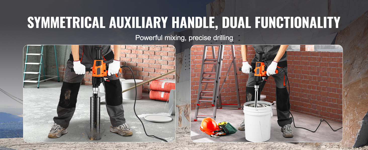 This handheld concrete core drill not only excels at efficient drilling but also features a powerful mixing function. It’s ideal for mixing various construction materials like cement, paint, and glue, providing you with a convenient and efficient solution for your project needs.
