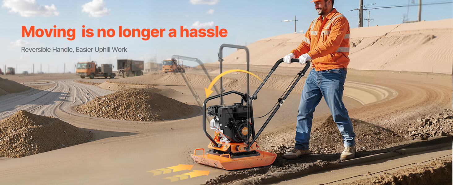 • Effortless Operation: Equipped with a non-slip handle, this plate compactor stops sweaty palms from slipping even in hot weather. The folding grip allows for better storage when the work is done. The adjustable-angle handle makes it easy to push or pull the compactor uphill.
